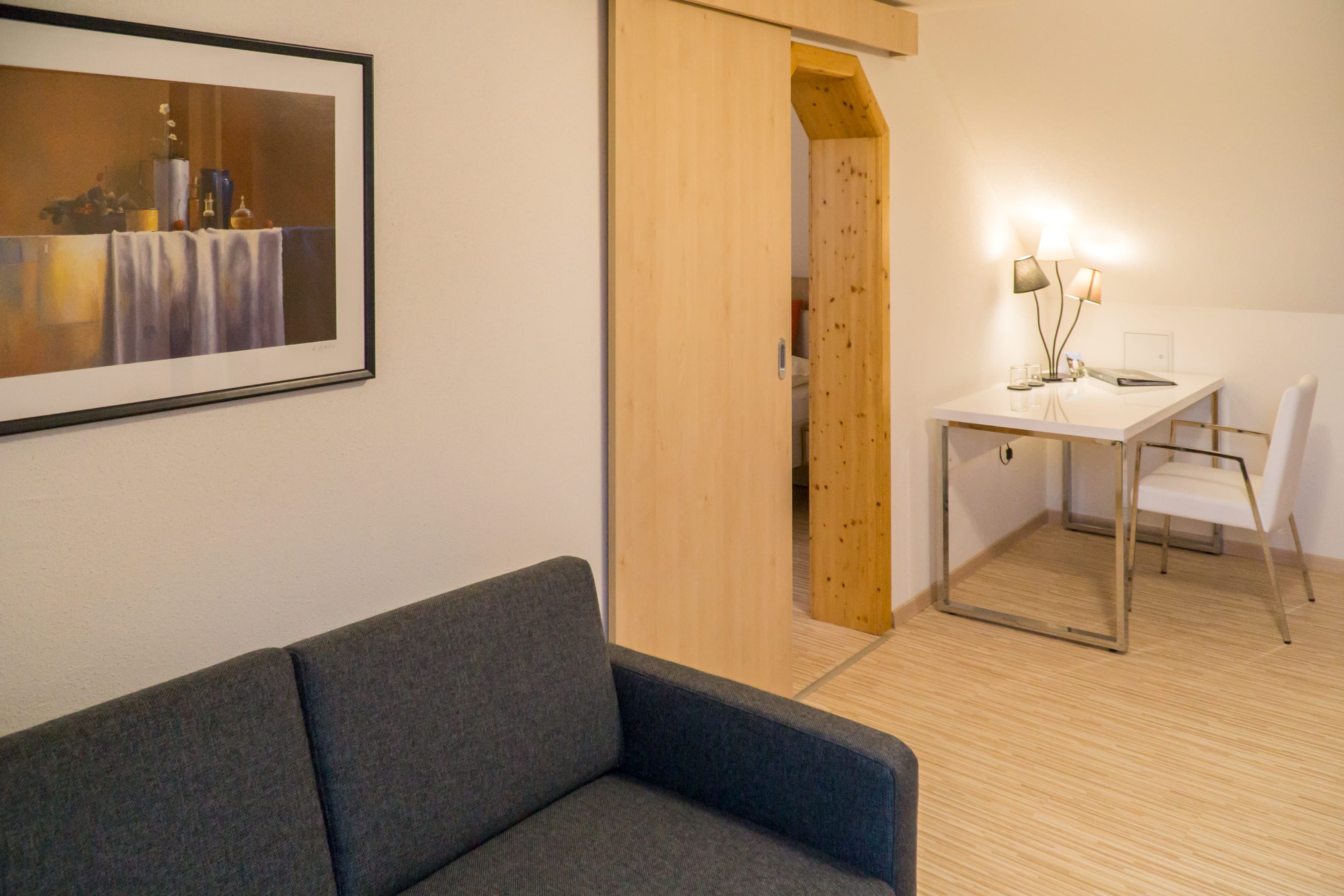 Die Familiensuite befindet sich im Dachgeschoß und ist eines der ruhigsten Zimmer im Haus.