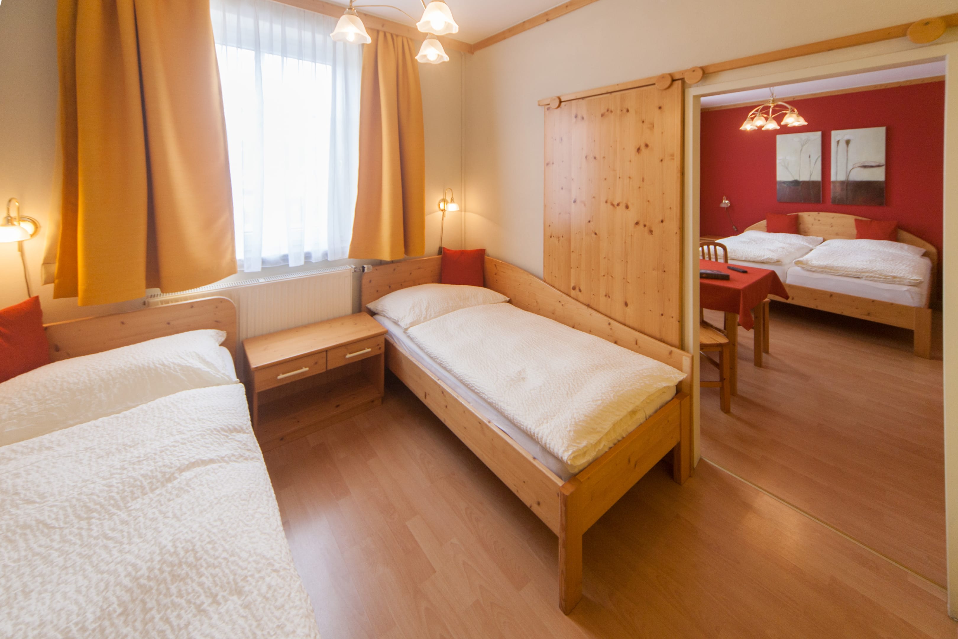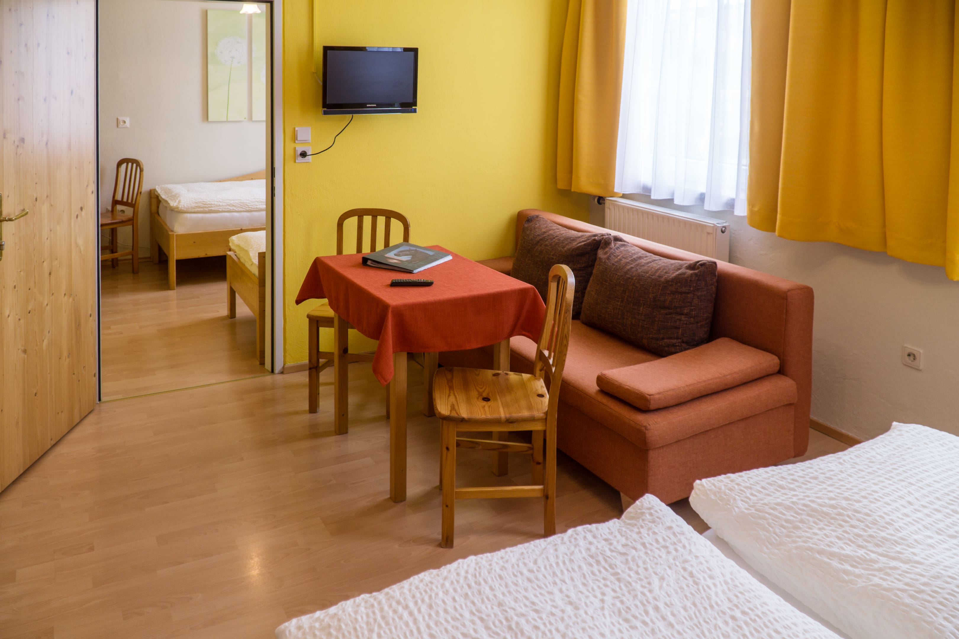 Das Familienzimmer – einfach zum Wohlfühlen ein und für Familien die ideale Lösung. Die Zwei mit einander verbundenen Zimmer sind jeweils mit Dusche/WC, Fön u. Flachbild-SAT-TV und kostenlosem WLAN ausgestattet.
