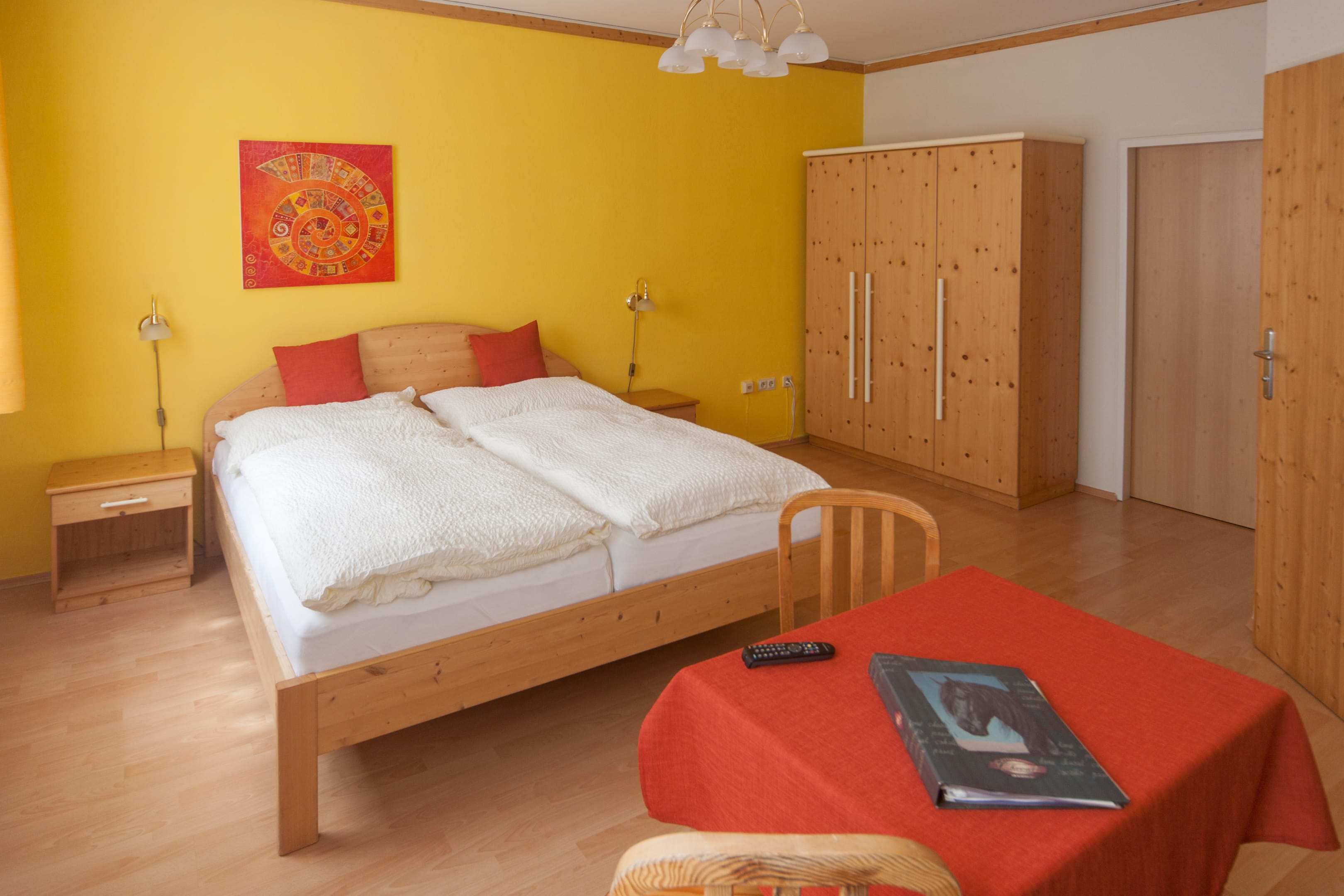Die Komfort Doppelzimmer laden zum Wohlfühlen und Entspannen ein. Von den Fenstern hat man eine gute Sicht auf den kleinen Bach, die Romau und die Pferdekoppel vom Haus gegenüber.
